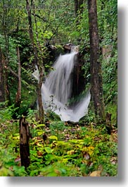 asia, bhutan, forests, lush, nature, plants, trees, vertical, water, waterfalls, photograph