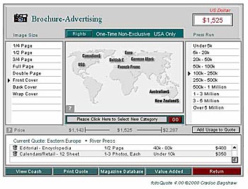 It's counter-productive to think that you're going to set price points that (a) people will either accept or reject, or (b) apply to the broader global market. Selling is ultimately about negotiation, so your pricing tables should really be thought of as starting points for discussion. It's true that if you're selling "commodity products," like calendars or even prints, one rarely deviates from the price list. However, when it comes to a consultive sale, where someone wants to license an image of individual and unique uses, variables come into play that don't apply to the commodity market.