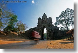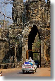 asia, cambodia, gates, south gate, statues, tuk tuk, vertical, photograph