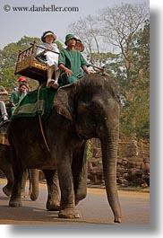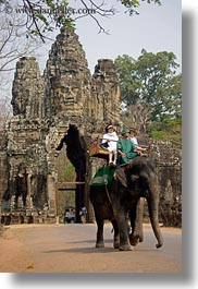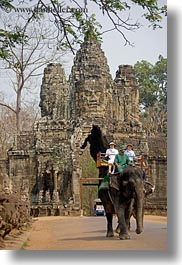 asia, cambodia, elephants, gates, men, riding, south gate, vertical, photograph