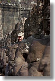 asia, cambodia, gates, heads, south gate, statues, vertical, photograph