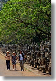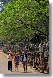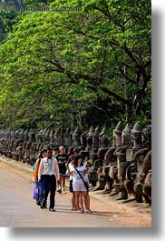 asia, cambodia, gates, people, south gate, statues, vertical, walking, photograph