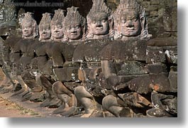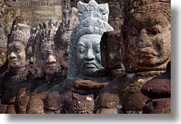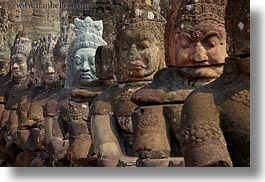 asia, cambodia, gates, heads, horizontal, south gate, statues, photograph