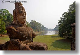asia, cambodia, gates, horizontal, moat, south gate, statues, photograph