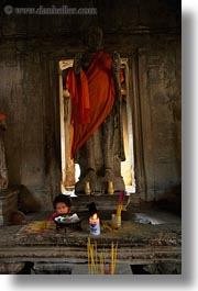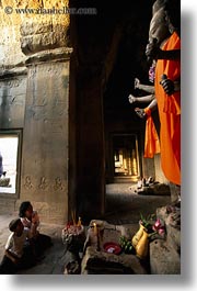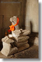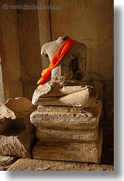 angkor wat, asia, buddhas, cambodia, scarves, sitting, vertical, photograph