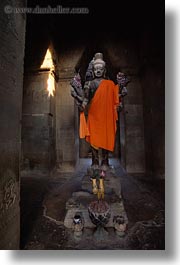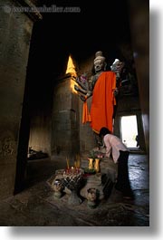 angkor wat, asia, buddhas, cambodia, scarves, standing, vertical, photograph