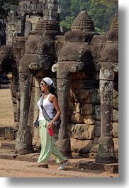 angkor thom, asia, cambodia, elephant terrace, elephants, stones, tourists, vertical, walls, womens, photograph