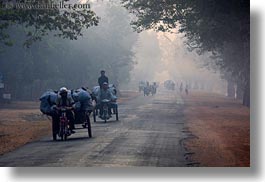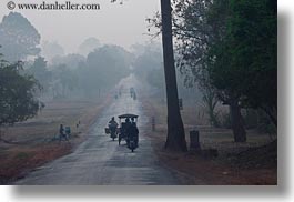 asia, cambodia, foggy, horizontal, lined, roads, scenics, trees, vehicles, photograph