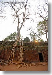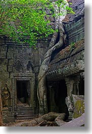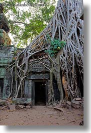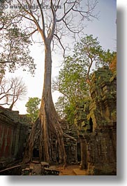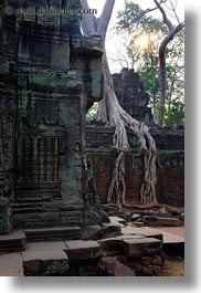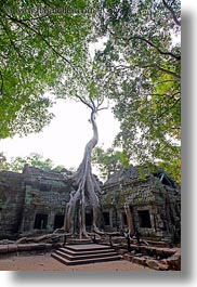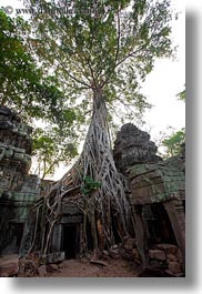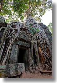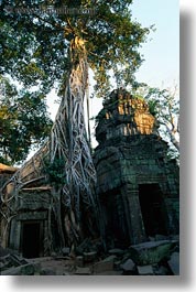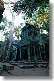 architectural ruins, asia, cambodia, fin, roots, ta promh, vertical, photograph