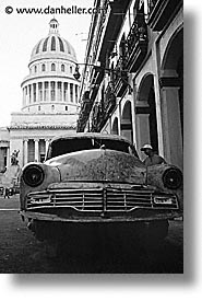 black and white, capitolio, caribbean, cars, cuba, havana, island nation, islands, latin america, south america, vertical, photograph