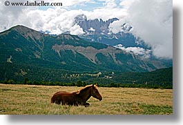 alto adige, animals, dolomites, europe, horizontal, horses, italy, photograph