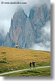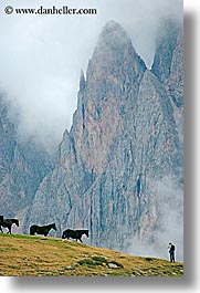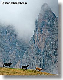 alto adige, dolomites, europe, fog, horses, italy, rasciesa, rasciesa massif, vertical, photograph