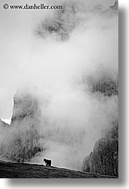 alto adige, black and white, dolomites, europe, fog, horses, italy, rasciesa, rasciesa massif, vertical, photograph