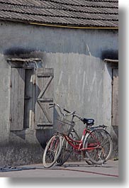 asia, bicycles, bikes, buildings, grey, ha long bay, red, vertical, vietnam, photograph