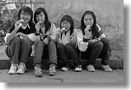 asia, black and white, girs, hanoi, horizontal, ice cream, people, teenage, vietnam, womens, photograph