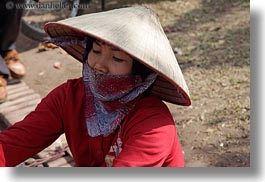 asia, conical, hanoi, hats, horizontal, people, red, vietnam, womens, photograph