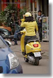 asia, hanoi, motorcycles, people, vertical, vietnam, womens, yellow, photograph