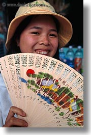 asia, asian, childrens, emotions, fans, girls, hue, people, smiles, smiling, vertical, vietnam, photograph