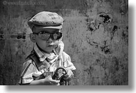 asia, asian, black and white, boys, childrens, hue, people, sunglasses, toddlers, umbrellas, vertical, vietnam, photograph
