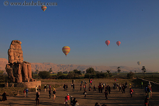 statues, balloons, egypt, seated, horizontal, colossi of memnon, africa