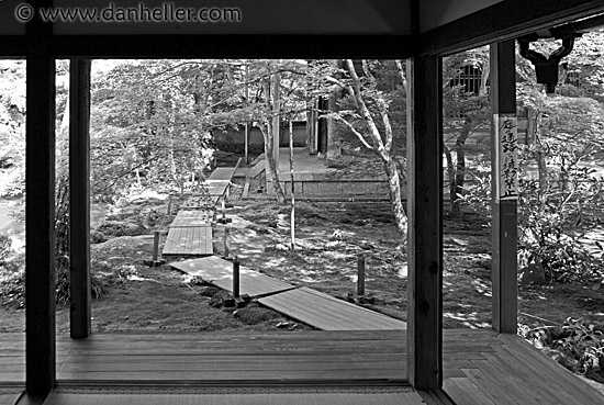 zen, black and white, koto in, japan, asia, kyoto, horizontal, walkway, gardens