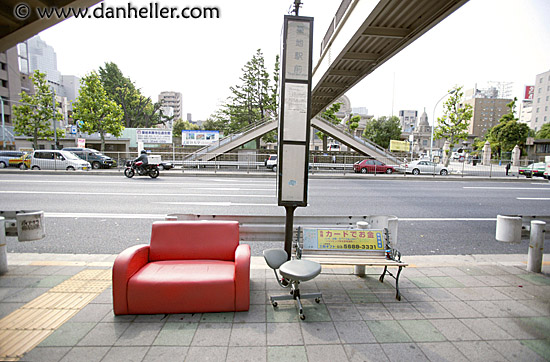 tokyo, streets, couch, japan, kanto, asia, red, horizontal