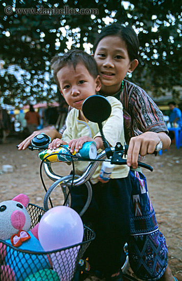 girls, emotions, childrens, smiles, people, vertical, luang prabang, motorcycles, asia, laos