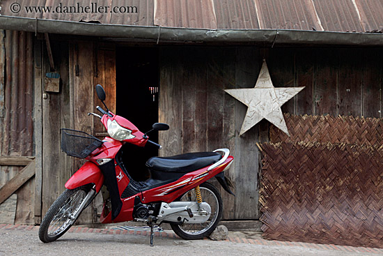 stars, bikes, luang prabang, motorcycles, asia, laos, red, horizontal, transportation