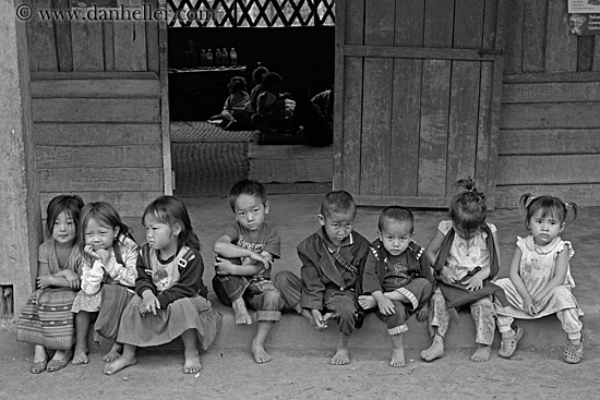 childrens, black and white, villages, hmong, people, asia, asian, laos, school, horizontal