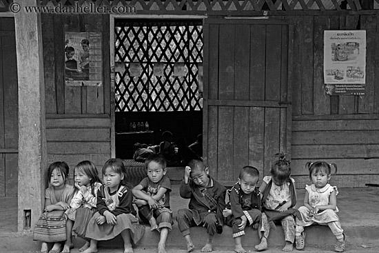 childrens, black and white, villages, hmong, people, asia, asian, laos, school, horizontal