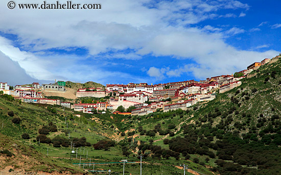 monastery, electric, poles, tibet, landscapes, asia, ganden monastery, horizontal, lhasa