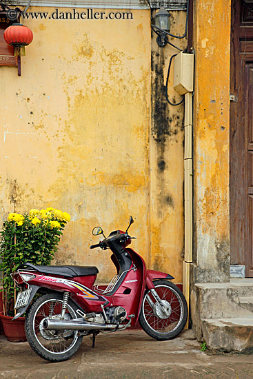 hoi an, bikes, vertical, vietnam, walls, asia, moped, yellow