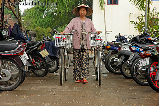 womens, walking, hoi an, bikes, old, vietnam, asia, horizontal