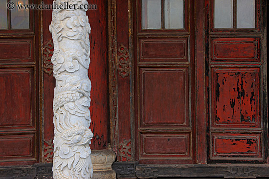 hue, bas reliefs, poles, dragons, woods, vietnam, doors, red, asia, citadel, horizontal