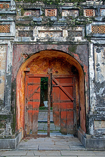 arches, hue, broken, old, woods, vietnam, vertical, doors, asia, citadel