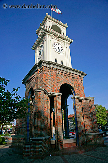 west coast, garden mall, flags, california, colors, western usa, clock tower, vertical, blues, santa cruz