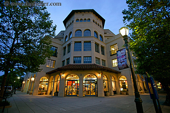 west coast, garden mall, california, houses, nite, western usa, stores, buildings, cooper, horizontal, trees, plants, nature, structures, lamp posts, dusk, santa cruz