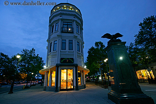 west coast, garden mall, california, nite, structures, colors, western usa, stores, slow exposure, dusk, blues, flatiron, buildings, horizontal, santa cruz