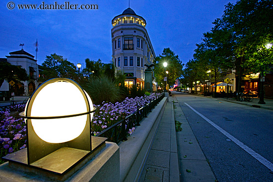 west coast, garden mall, california, nite, colors, western usa, slow exposure, dusk, blues, flatiron, buildings, horizontal, santa cruz