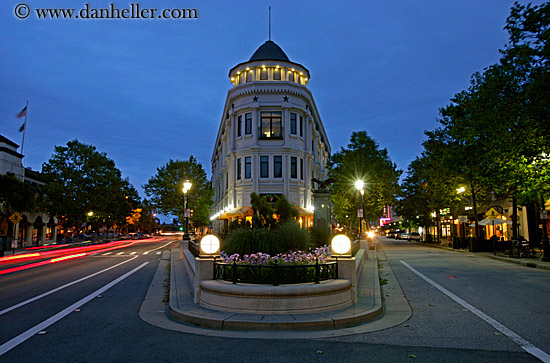 west coast, garden mall, california, light streaks, nite, colors, western usa, dusk, motion blur, blues, flatiron, long exposure, buildings, horizontal, santa cruz