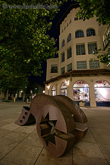west coast, garden mall, plants, california, nite, nature, arts, western usa, slow exposure, vertical, modern art, buildings, trees, santa cruz, modern