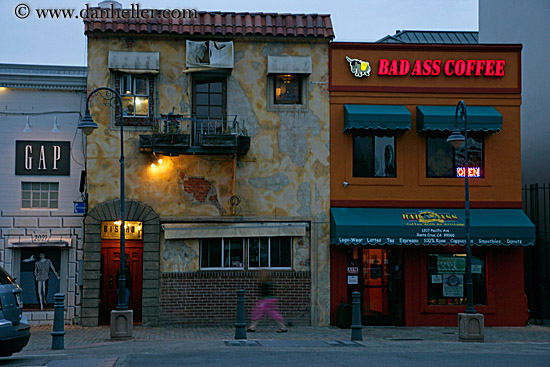 west coast, garden mall, signs, california, nite, structures, storefronts, western usa, stores, slow exposure, lamp posts, buildings, horizontal, santa cruz