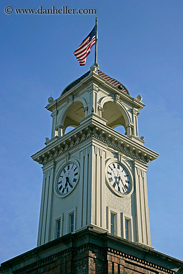 west coast, garden mall, flags, california, colors, western usa, clock tower, vertical, blues, santa cruz