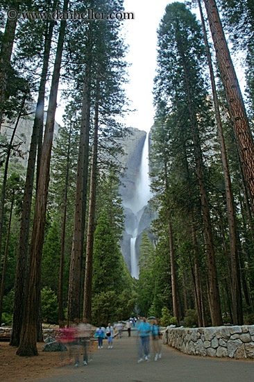 west coast, california, activities, walkers, paths, western usa, waterfalls, motion blur, trees, water, nature, slow exposure, yosemite, yosemite falls, vertical, walk, falls