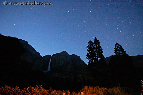 west coast, trails, california, star trails, nite, western usa, waterfalls, horizontal, trees, sky, stars, water, nature, yosemite, yosemite falls, long exposure, falls