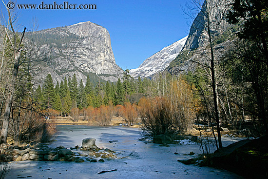 west coast, plants, mirror lake, california, water, nature, frozen, yosemite, western usa, ice, horizontal, mountains, trees, lakes