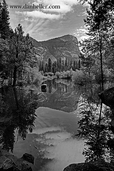 west coast, black and white, mirror lake, california, water, nature, yosemite, western usa, vertical, reflections, clouds, mountains, trees, lakes