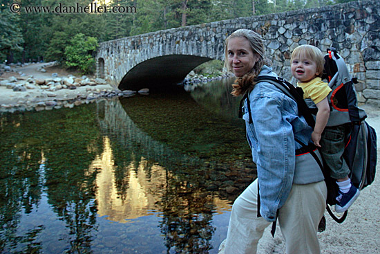 west coast, jacks, california, toddlers, western usa, boys, babies, jack and jill, mothers, horizontal, rivers, womens, jills, bridge, water, nature, structures, yosemite, people