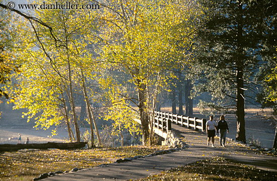 west coast, plants, walking, california, bridge, structures, nature, yosemite, western usa, horizontal, trees
