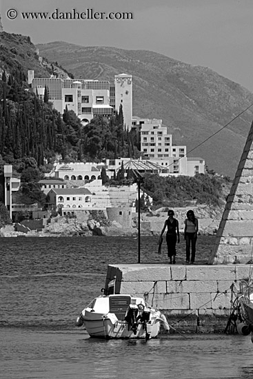 womens, black and white, croatia, dubrovnik, vertical, europe, walk, boats, harbor